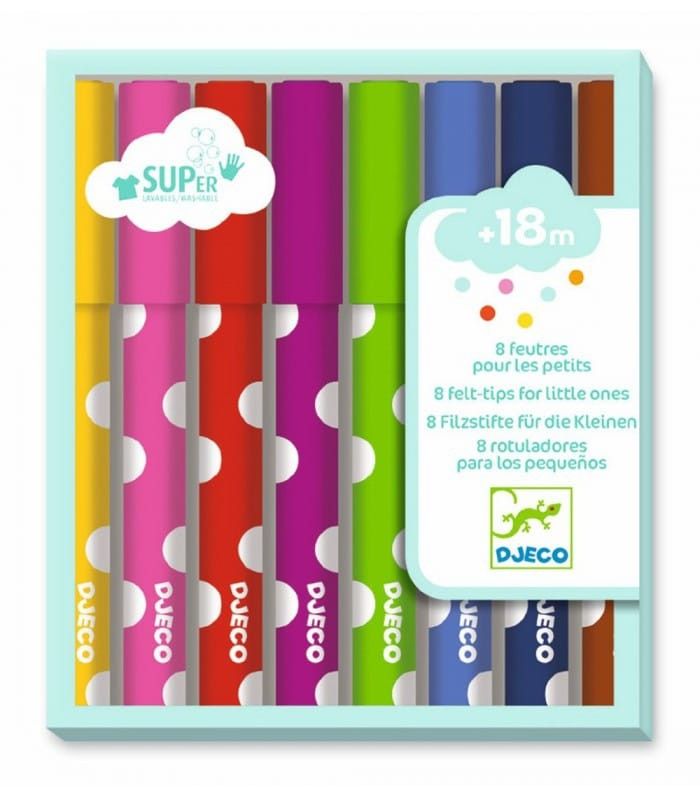 Entdecke die 8 Filzstifte von Djeco für die Kleinsten – 8 super abwaschbare Filzstifte für Kinder ab 18 Monaten. Große Filzspitzen liegen gut in der Hand, und die Tinte ist abwaschbar, sodass weder Kleidung noch Hände verfärbt werden. Das Set enthält 8 farbige Filzstifte: Gelb, Rosa, Rot, Lila, Grün, Blau, Schwarz und Braun. Denn mit dem richtigen Werkzeug macht Kreativität mehr Spaß und sieht schöner aus! Unverzichtbares Zubehör für die kreativen Hobbys von Kindern.