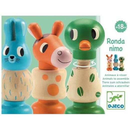 Rondanimo, ein Set aus 3 Tieren zum Zusammenschrauben. Ideal für Kinder ab 18 Monaten. Spielerisch nach Farbe und Form zusammenschrauben und die Tiere tauschen, um die Grobmotorik zu fördern.