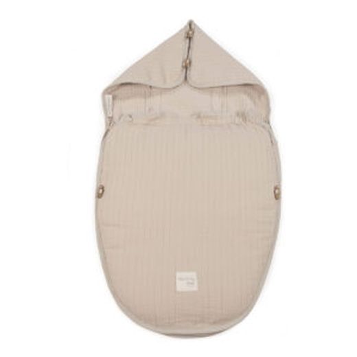 Funda con saco Eco Mum . Está fabricado con un tejido exterior 100% algodón reciclado y una suave muselina en el interior 100% algodón. Es ideal para cuco y portabebé.